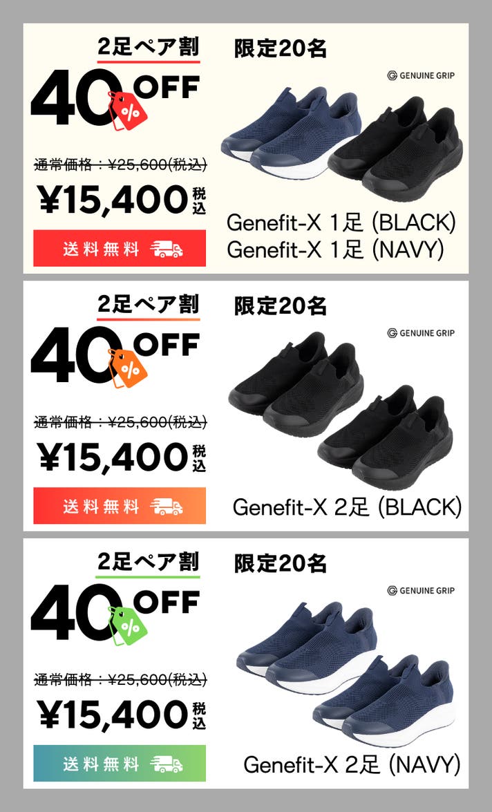 【2足ペア割 ブラック&ネイビー Genefit X 】