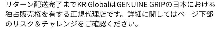 皆様こんにちは、実行者のKR Globalです。私達は海外のモノづくりとそこで頑張る人達を応援し、その世界で躍動するエネルギーを日本の皆様に伝える事業者です。この度は「GENUINE GRIP Genefit-Xハンズフリー」に興味をお持ち頂き有難うございました。