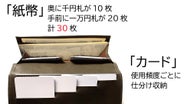 ◇メインカード8枚が整列。一級職人の独自設計で「一目瞭然」 シリーズ最小クラスのミニ長財布【Genes】