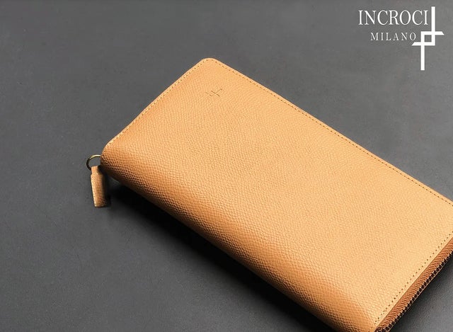 「この財布を長く使っていただきたい」という想いから、外側のレザーには、数あるレザーの中から「傷がつきにくく」「長く美しさを保てる」革を選び抜き、イタリアの有名なブランドもこぞって使う、このイタリア製のプレミアム牛革にたどり着きました。