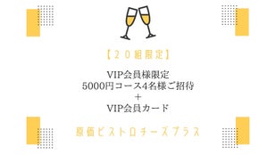 【20組限定】VIP会員様限定5000円コース 4名様+VIP会員カード