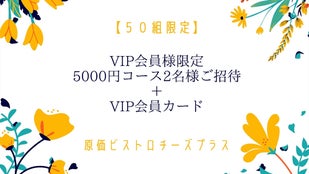 【50組様限定】VIP会員様限定5000円コース 2名様+VIP会員カード