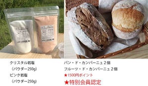 ◆クリスタル岩塩パンセット:クリスタル岩塩と国産小麦・水だけで作った無添加のパンセット(パン・ド・カンパーニュとフルーツ・ド・カンパーニュ)
