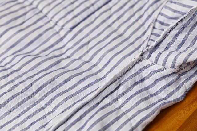 試行錯誤して決めた柄でガーゼを織り、脱脂綿を間に上下をガーゼで挟み、ミシン加工。