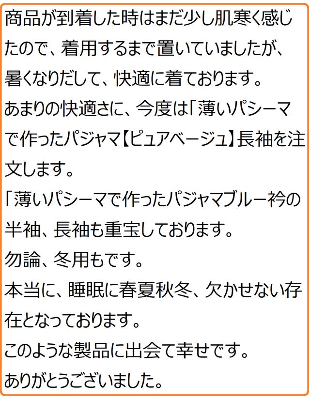 パシーマ生地のパジャマの価値を解ってくださっているからです。