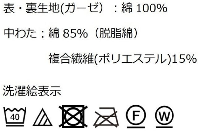 衛生材料と同じ行程を経て作られ、100℃で煮て150℃の熱風で殺菌します。また、洗濯による毛羽発生も少ないです。ですから、綿毛が飛散せず、ほこりがを抑える効果があります。