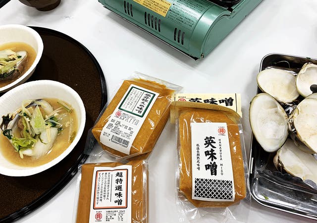昔ながらのオーソドックスな信州味噌で、すっきりとした香り。白味噌特有の香りや甘味は、ハマグリの旨味を引き立ててくれました。