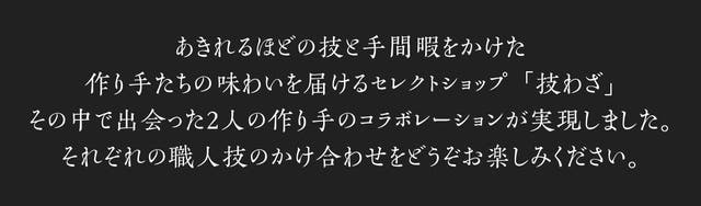 技わざ(わざわざ)は、『あきれるほどの、技と手間暇。』をコンセプトに2019年3月5日にネット通販サイトをオープンしました。全国の作り手が手間暇かけてつくるものだけを集めたセレクトショップです。作り手のこだわりや想いを商品と共にお届けしております。本プロジェクトは技わざと飯岡ヤマイチ水産と丸井伊藤商店が協力し、皆様へ商品をお届けします。