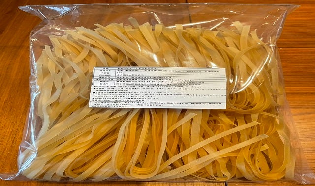●粉っぽさはなく、モチモチの食感、幅広麺なので、さまざまなソースと絡みやすい。お好きな味でお楽しみ頂けます。