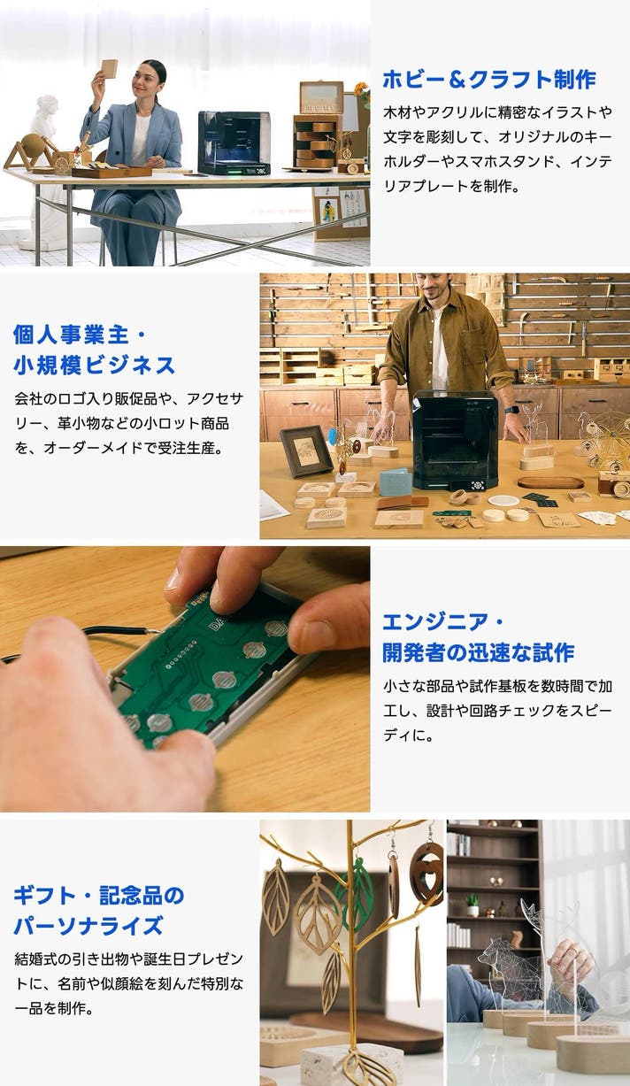 写真の彫刻も可能で、初心者でも簡単に扱えるため、DIYプロジェクトをぐっと魅力的に仕上げることができます。自宅にいながら、幅広い創作体験を楽しむことができます。