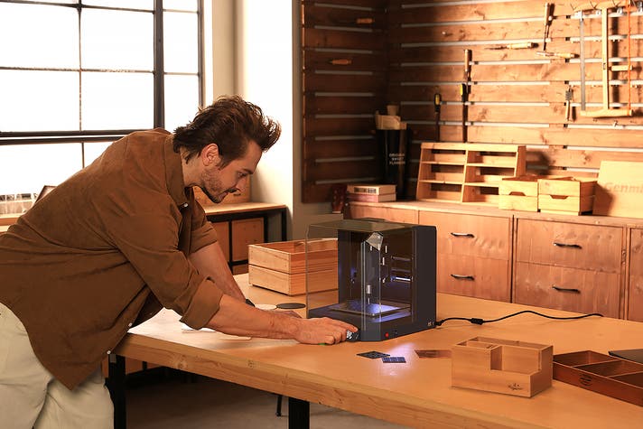 組み立てが完了した状態で製品が届くので、箱から取り出して電源を繋ぐだけで、すぐに制作を始められます。従来のCNCマシンとは異なり、簡単な設定ですぐにマシンをスタートできるので、「作りたい!」というあなたの意欲を逃しません。あっという間に、あなただけの特別な工房が完成します!