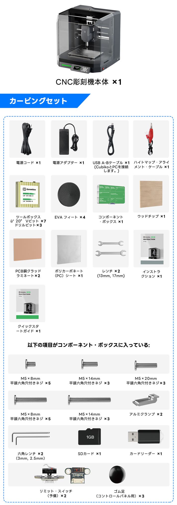Genmitsu Cubiko は、木材はもちろん、アクリル、アルミなど様々な素材を驚異の0.1mm精度で加工可能!熟練の職人技をデジタルで再現し、繊細なデザインも忠実にカタチにします。趣味のDIYから本格的な作品制作まで、あなたのアイデアを無限に広げます。