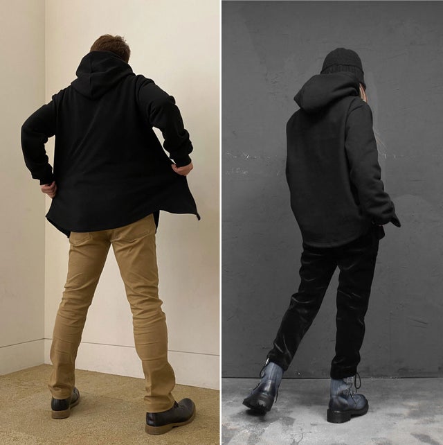 ↓↓モデル身長169cm、パーカーL、パンツMサイズ着用