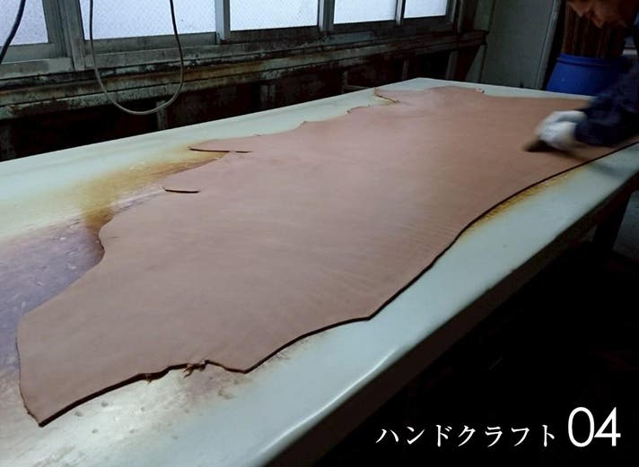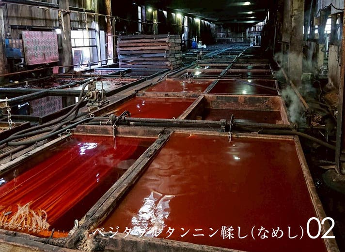 革の繊維にタンニンをじっくり丁寧に染み込ませています。