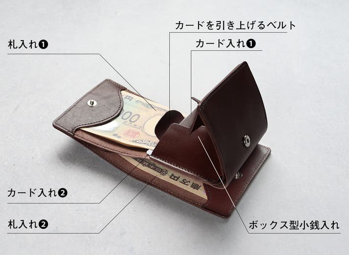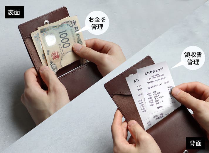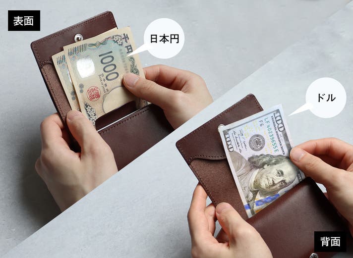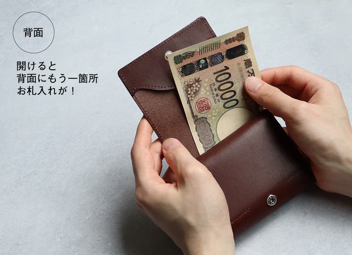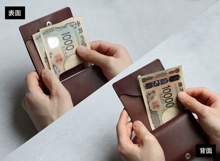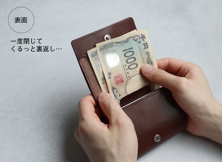 札入れを財布の内側と外側、それぞれに配置、ちょっとマジックのような新発想の構造。特許を取得した本製品を、ぜひ手に取ってみてください。