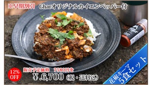『花椒キーマ』5食セット、早期特典カイエンペッパー付 販売予定価格7580円を6700円(12%OFF) 200セット (3/30 18時受付分まで)