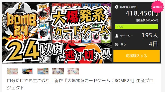 リターンは、「GHOST PANIC(ゴーストパニック)」の販売する場合の予定価格と「BOMB24」の合計3960円 +「送料」から割引した金額になります。