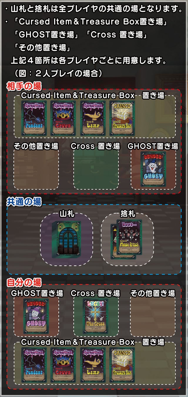 本作「GHOST PANIC(ゴーストパニック」と旧作「BOMB24」と旧作「この世の武器は僕のもの」がそれぞれの製品1箱がついており、遊ぶことができます。