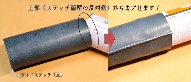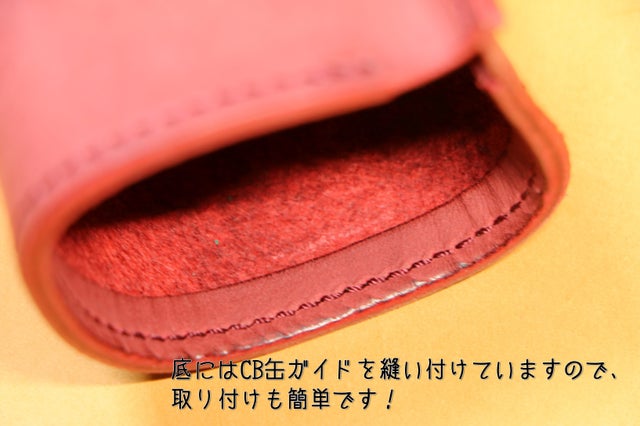 カバー底部(革ガイドが縫い付けてある部分)からは、CB缶が挿入できない構造となっておりますので、お気をつけ下さい。