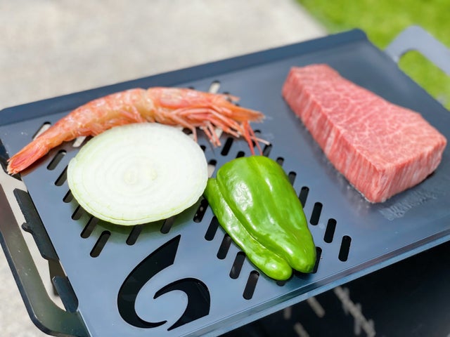一体型鉄板網では、直火で海鮮を焼きながら、鉄板でお肉を焼くなど、複数の食材を同時に調理することが可能です。