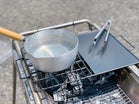 大きなサイズでない限り、通常1つの焚き火台には、網と鉄板のどちらかしか置けません…。