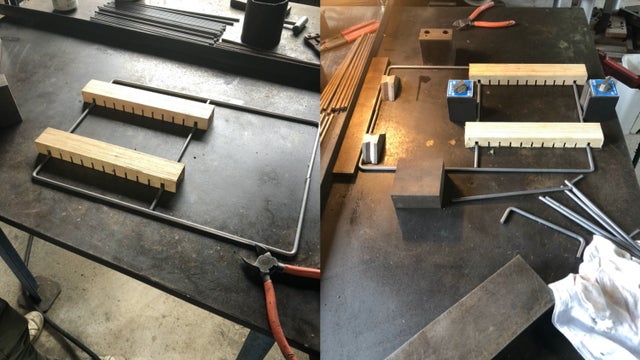 大枠(丸棒:6φ)を曲げ加工で製作するところから始まります。