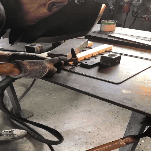 アミ部分が全て完成した段階で板金職人へとバトンを渡し、鉄板(3.2t)を取り付けます。