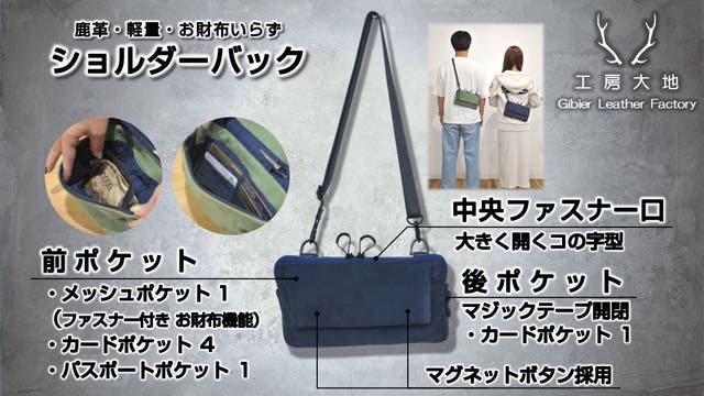 軽く、やわらかく、しなやか、機能性抜群、鹿革ショルダーバッグ
