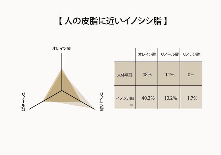 人の皮脂組成に極めて近いイノシシ脂を食品レベルに精製。