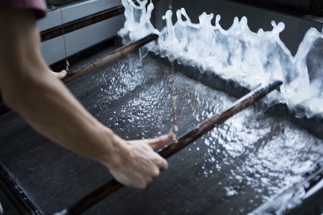 2014年にユネスコ無形遺産に登録された本美濃和紙。この技術を受け継いだ美濃和紙を糸にしてシャツ地を作る。