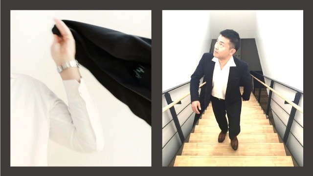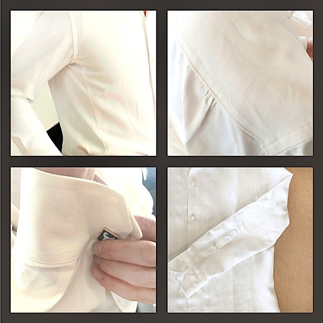 腕周りや脇のパターンをより立体的にパターンメイクし、よりジャケットに近いシルエットになるように研究を重ねました。