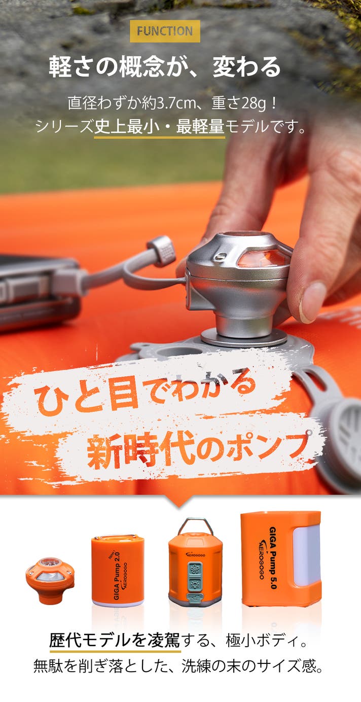 革新的なテクノロジーと圧倒的な性能を融合させた、アウトドアエアポンプの到達点です。