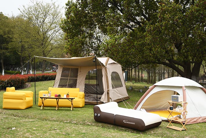 AeroNestシリーズは、エアソファやエアマットレス、インフレータブルテントやベッドなど、空気で膨らむアウトドアファニチャーに特化したラインアップです。