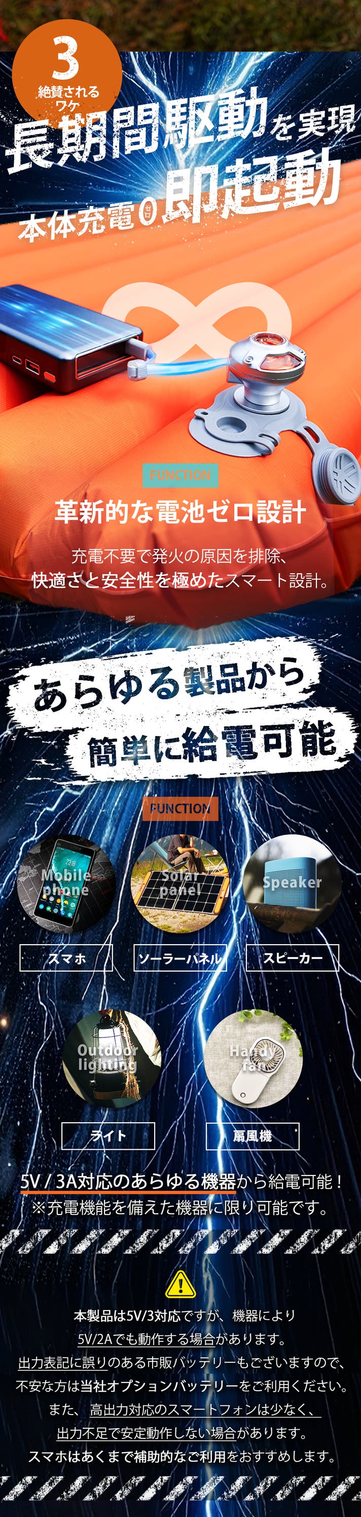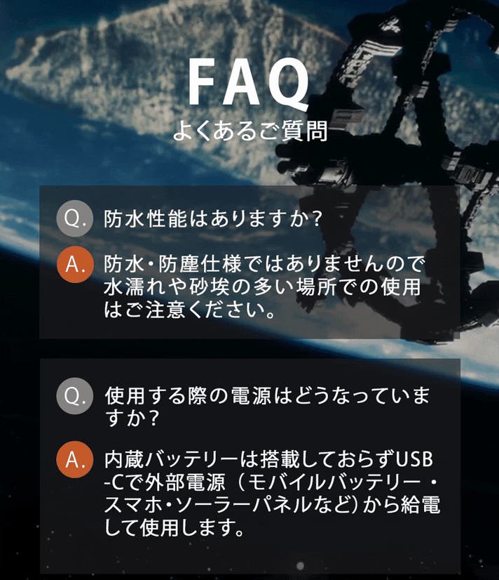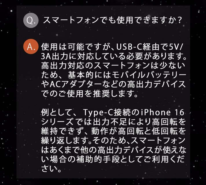 - 【宇宙技術×安心設計】 バッテリー非搭載で発火リスクを大幅軽減。電源があれば、どこでも即稼働
