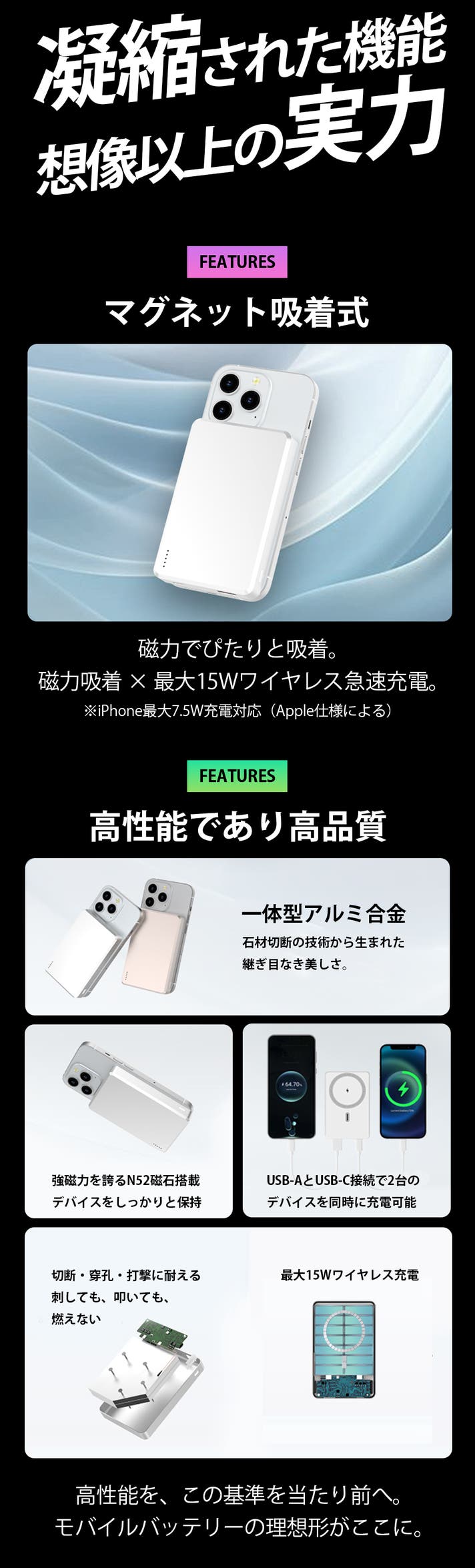安心と耐久性、そして洗練されたデザイン。そのすべてを兼ね備えた、次世代モバイルバッテリーの到達点です。