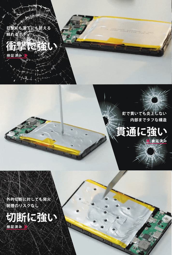 日常に潜むリスクに備え、極限の状況にも揺るがない安全性を実現した新世代の準個体電池モバイルバッテリー。
