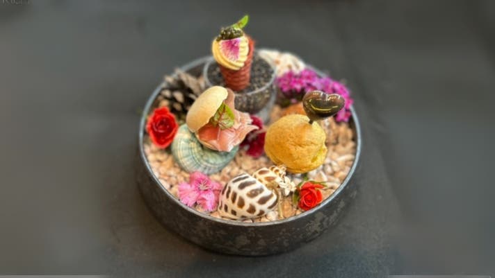 3周年記念コースには肉に至るまでの「物語」を大切にしている。前菜、サラダ、箸休め、そしてデザート──。すべての皿がフレンチの技法を取り入れ、美意識と余韻に満ちている。