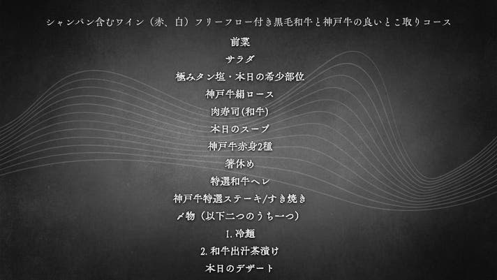 ワインフリーフロー付き黒毛和牛と神戸牛の良いとこ取りコース1名様分(個室確約)