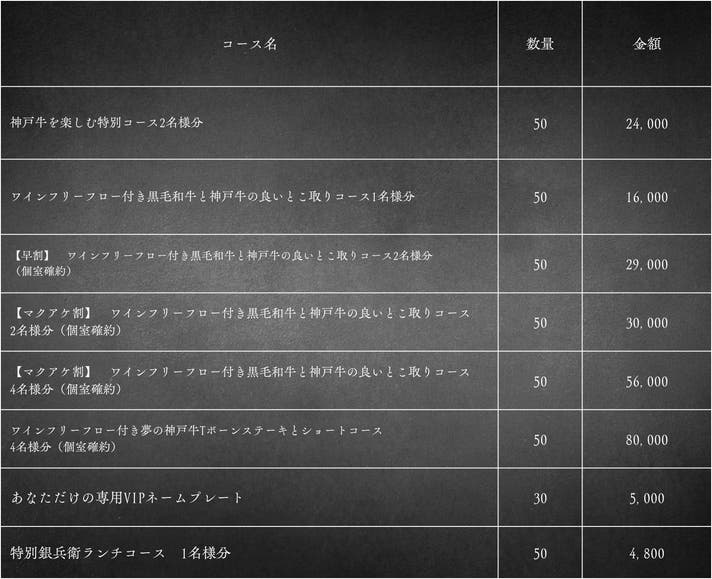 【マクアケ割】 ワインフリーフロー付き黒毛和牛と神戸牛の良いとこ取りコース4名様分 (個室確約)