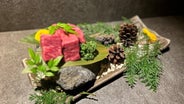 運ばれてきたのは、季節の野菜と神戸牛を用いた前菜。