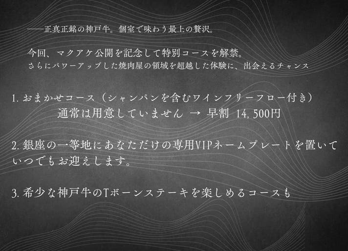神戸牛を楽しむ特別コース2名様分+個室確約付き