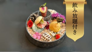 - 個室確約。3周年を記念してシャンパンを含むワインフリーフローを限定販売