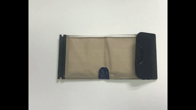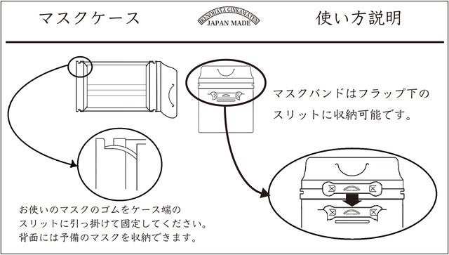 こちらにマスクを挟み込んでいただくことで不意の落下を防ぎ、折りたたむ際の補助にもなります。