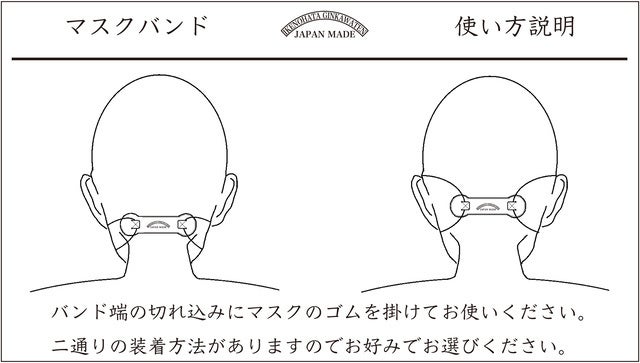 そこで本製品には耳ゴムを引っ掛けることで耳への負荷を抑える、マスクバンドをセットでお付け致します。