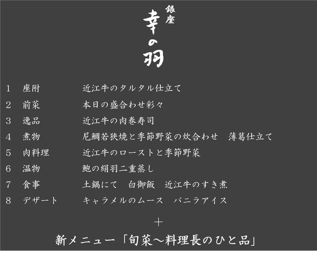 銀座 幸の羽の本格的なコースをもっと知って頂きたいという思いを込めて、Makuake専用の新たなコースを御用意致しました。
