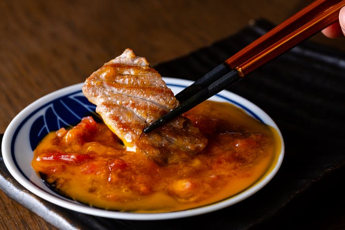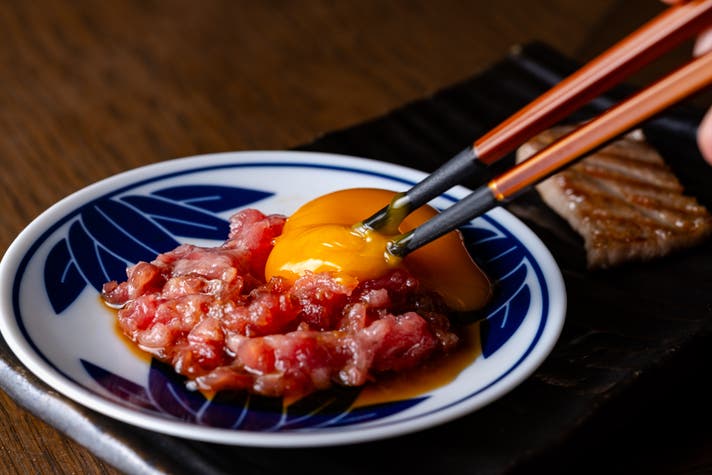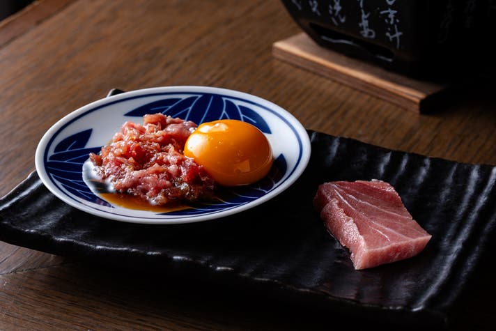 それから「天然生本まぐろ焼肉ユッケ」は、脂のノリが最高の中とろをさっとあぶり、卵とからめてユッケ風にアレンジ。