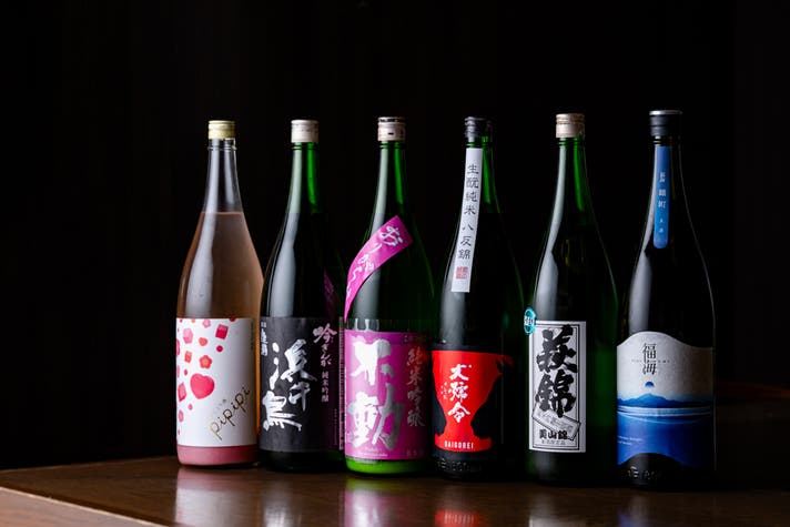 店に足を踏み入れると、まず目に飛び込んでくるのが錚々たる顔ぶれの日本酒の瓶。