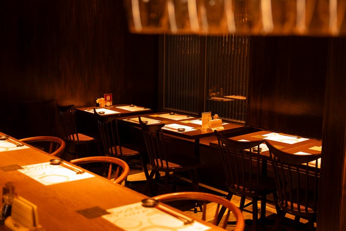 シックな色調でまとめられた店内は居心地が良く、デートや会食、友人との食事会などさまざまなシチュエーションに対応。