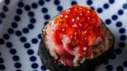 まず、「天然生本まぐろ太巻き すきみいくらのせ」は、本まぐろをたっぷりと使い、大胆に太巻きに仕立てたものに、まぐろのすきみといくらをトッピング。