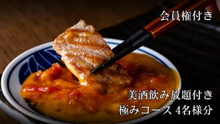 美酒飲み放題付き極みコース 4名様分 + 会員特典